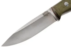 The Bark River Aurora A2 Green Canvas Micarta Red Liner is a great bushcraft knife. Prototypes of the Aurora were extensively tested by bushcraft-experts in North America and Europe. Based on their feedback the Aurora was perfected. The result is a truly fantastic outdoor knife. The Bark River Aurora is perfectly balanced. The pointed tip is great for detailed tasks and the spine of the blade is perfect for a firesteel. The Bark River Aurora comes with a leather belt sheath. You can carry it either upright (belt width up to 5.5 cm) or diagonally (belt width up to 6.0 cm). The sheath also has a loop for a firesteel (max. diameter ~7.0 mm).