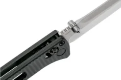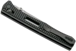 The Benchmade Fact is a slim and minimalistic pocket knife. When you look at its size it is hard to imagine that this knife only weighs 92 grams. The handle is made from black anodized aluminium. The pattern that has been milled into it ensures that you have enough grip. As such you will enough grip despite the fact that the handle is very slim.