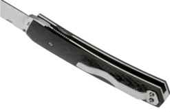 The Brisa Piili 85, 2862 is a pocket knife designed by Jukka Hankala. This Finnish designer has won many awards. The Brisa Piili 85 has got that typical Scandinavian look and feel. You can describe it as a foldable Puukko knife. The carbon fibre scales are enhanced with steel liners and ensure that you have enough grip. The blade is made from stainless steel Elmax steel. This Austrian type of steel retains its sharpness really well and is made to be used.