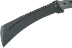 The Buck Talon is a large survival knife. It is almost a machete. It is very versatile, both during camping trips and when maintaining the garden. It was originally designed to clear jungle paths. The blade is enhanced with a ‘hawkbill’ shape. It is almost a hook. The result is that the material is somehow pulled ‘into’ the edge.