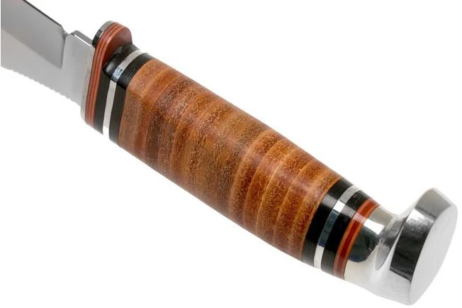 The Case Medium Skinner Leather Hunter is a tough fixed knife, designed for hunting. The skinner blade shape looks great and is also perfect for gutting game. The leather handle is fitted with a finger guard, so your fingers stay safely behind the blade. There is a nice, matching aluminium pommel at the end of the handle.