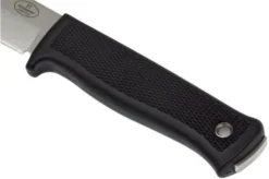 Fällkniven is very ‘modest’ about the S1. They think it’s the best hunting and fishing knife there is. And maybe they’re right too! The blade is made out of very strong laminated VG10 steel. Its sharpened convex making the knife edge really strong without increasing the risk of chipping. The blade has a modified clip-point shape by which the S1 creates high penetrating power. Although it is not a very large knife, it is big and strong enough to chop with. This makes the Fällkniven S1 very suitable for survival.