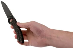 The Fox Knives Radius FX-550 CFB is a cool and remarkable pocket knife. At the 2019 Blade Show in Atlanta, Georgia USA this knife won awards for the best imported knife and Overall Knife of the Year. The Fox Knives Radius is a revolutionary pocket knife. The thumb stud is added to the handle and also functions as a lock. Really unique! By pushing the thumb stud you can unlock the knife to make sure you can close it. No one has ever done that. And funnily enough it is a type of invention that makes you think: why didn’t anyone come up with this before?