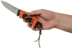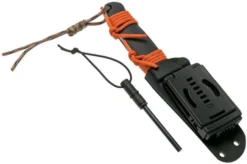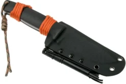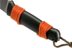 The Fox Knives Vesuvius BF-710 is a robust and affordable bushcraft knife, from the Black Fox collection. Striking about the Fox Vesuvius is how complete it is. The knife is enhanced with extra-long pieces of paracord, and the sheath comes with a Tek-Lok and a firesteel. As a bushcraft enthusiast you will immediately have a couple important tools close to get to work.