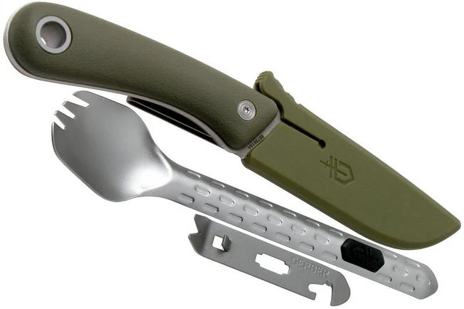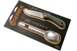 The Gerber Spine & Devour set 1052479 is comprised of a solid fixed knife and an outdoor spork. An afforable set that will upgrade any outdoor cooking experience!