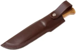 The Helle Didi Galgalu 610 is an all-round outdoor knife, designed in cooperation with the South African team Voetspore. The name Didi Galgalu comes from the Kenyan desert with the same name. This knife is made to withstand trips through Africa. The blade is made from stainless Sandvik 12C27 steel. The handle is made from a typically African type of wood: kiaat. This type of wood is sometimes also called African teak wood. When you look at the pattern of the wood you indeed see the similarity. Red liners were placed in between the scales and the tang of the blade. The comfortable finger grooves make the knife feel amazing in hand. Truly a knife you know is meant to be used.
