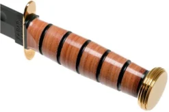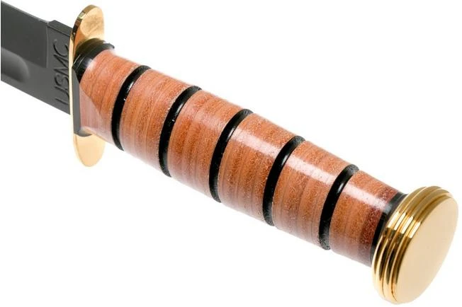 The KA-BAR USMC Presentation Grade Knife 1215 is a stunning presentation version of the legendary fixed knife: the 1217. The 1215 has fancy brass accents that go perfectly with the brown colour of the handle and the black blade.