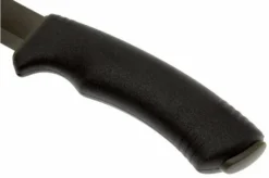The Mora Bushcraft Survival is a very popular knife, and for good reasons. It’s a fixed blade, made of carbon steel. The steel has a black coating to protect the steel against corrosion. Besides, it also looks nice. The dimensions of the Bushcraft Survival are very well chosen. Big enough for heavier work, small enough to carry with you. The weight of 125 grams can even be called light.