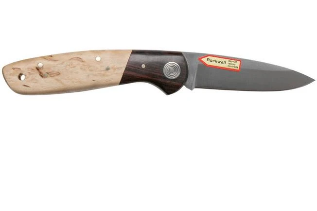 The PUMA IP Birch III is a modern gentleman’s knife. This pocket knife is made by hand in Spain. The beechwood handle has a finger groove, making it very comfortable to hold. The handle also features the classic PUMA IP shield and a stainless steel hole especially for your lanyard. The scales are held together by five small rivets. The blade is made from AN.58 steel, a simple, American stainless steel that is easy to sharpen. The blade and handle are nicely separated from each other by a bolster made from kingwood, a dark-coloured hardwood.
