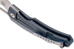 The Reate Baby Machine is a small gentleman’s knife, designed by Tashi Bharucha. This famous French designer designed the blade as such that it is a real slicer. As such it is great for use in the kitchen. If you look closely at the positioning of the cutting edge in relation to the handle, you can see that it does indeed cut well on a cutting board.