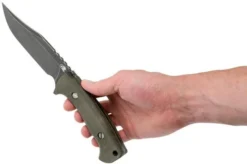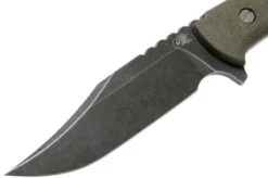 Be the first to review “Rick Hinderer Ranch Bowie Green Canvas Micarta, Battle Black, Bowie Knife” Cancel reply