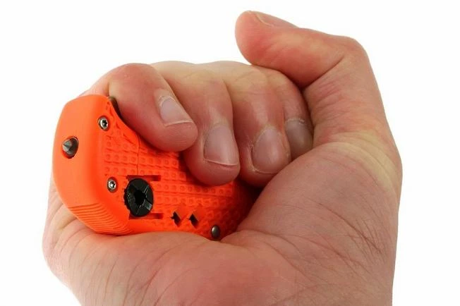 The name of this knife refers to the primary goal: to provide assistance. It is designed for first aid workers. For example, the rounded tip prevents injuries to victims who are to be freed. Furthermore, the knife is provided with an emergency whistle and an extendable and replaceable glass-or ice-breaker. You extend this by sqeeuzing the blade into the handle.
