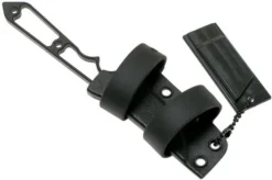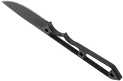 The TOPS Knives Street Spike STS-01 is a compact fixed knife, designed for EDC use. The construction is very nice. Made from one solid piece of steel. Because of the large blade and the thin milled out edges the knife feels great in hand. This is truly a next-level light-weight construction. You do, however, also notice that this knife is solid enough to also carry out the more demanding daily tasks. The 1095 carbon steel is not stainless, but very tough and easy to sharpen. The black powder coating protects the blade from rust. As such you don’t have to pay as much attention to it, and quickly get to work.