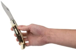 The Uncle Henry Folding Hunter 227UH is a large, inexpensive pocket knife. It has two blades: a clip point and a drop point. This knife was originally designed as a hunting knife, but it also comes in handy as a gentleman’s knife.